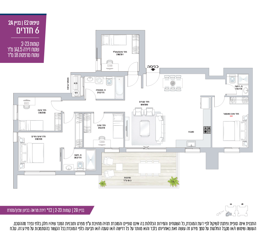 שטח דירה: 141.5 מ"ר | שטח מרפסת: 18 מ"ר
