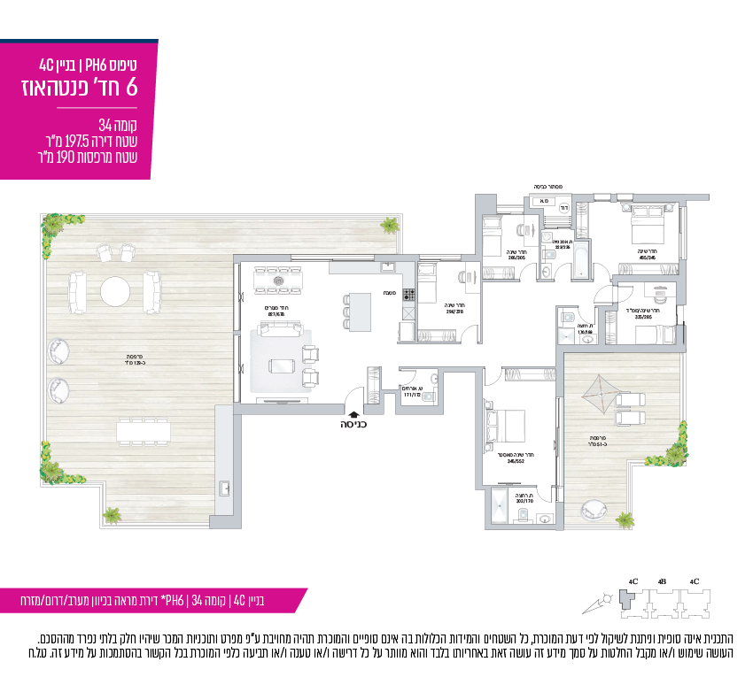 שטח דירה: 197.5 מ"ר | שטח מרפסת: 190 מ"ר
